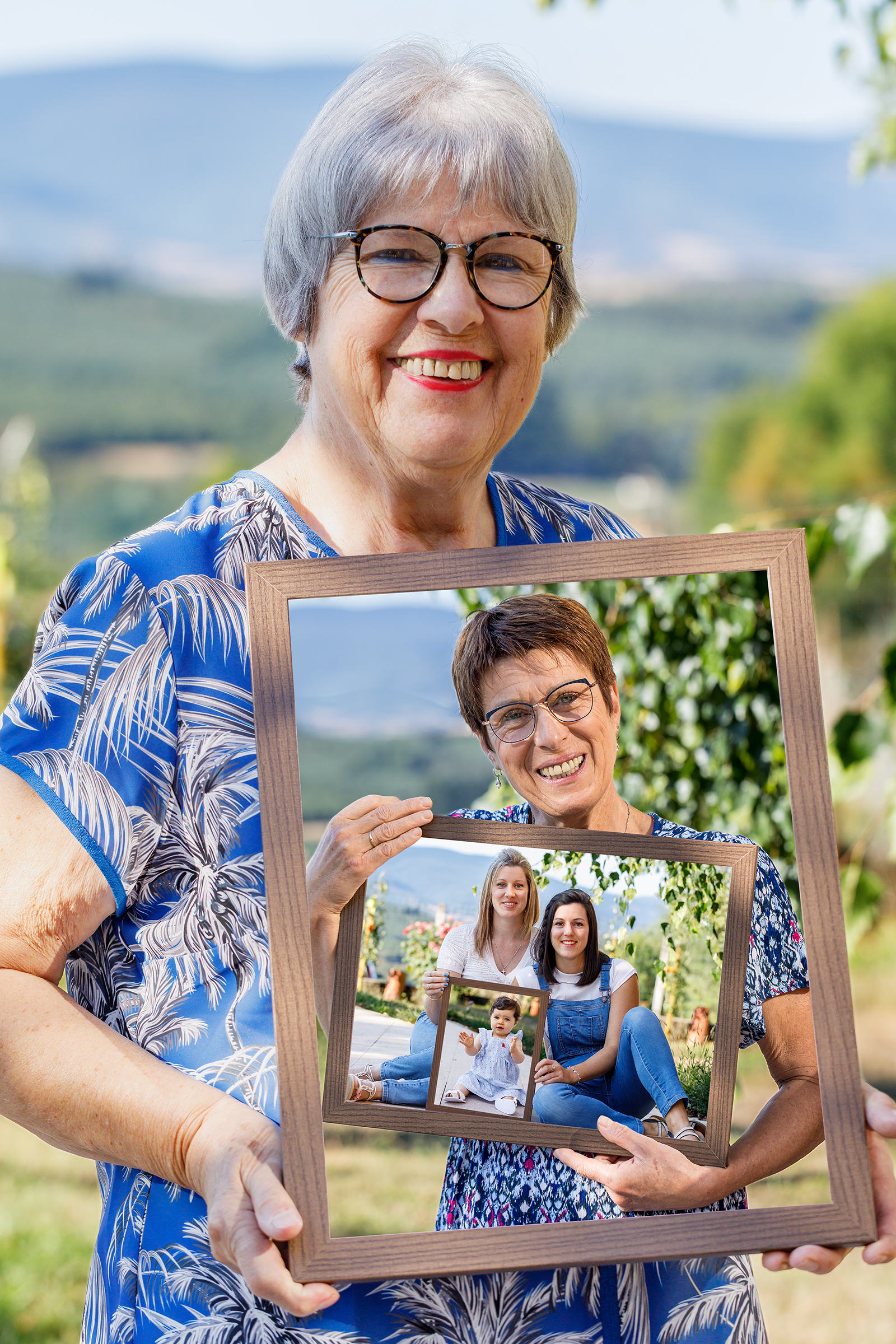 Ensuite, par un montage soigneusement travaillé, j’imbrique les images les unes dans les autres pour composer les liens de votre famille.