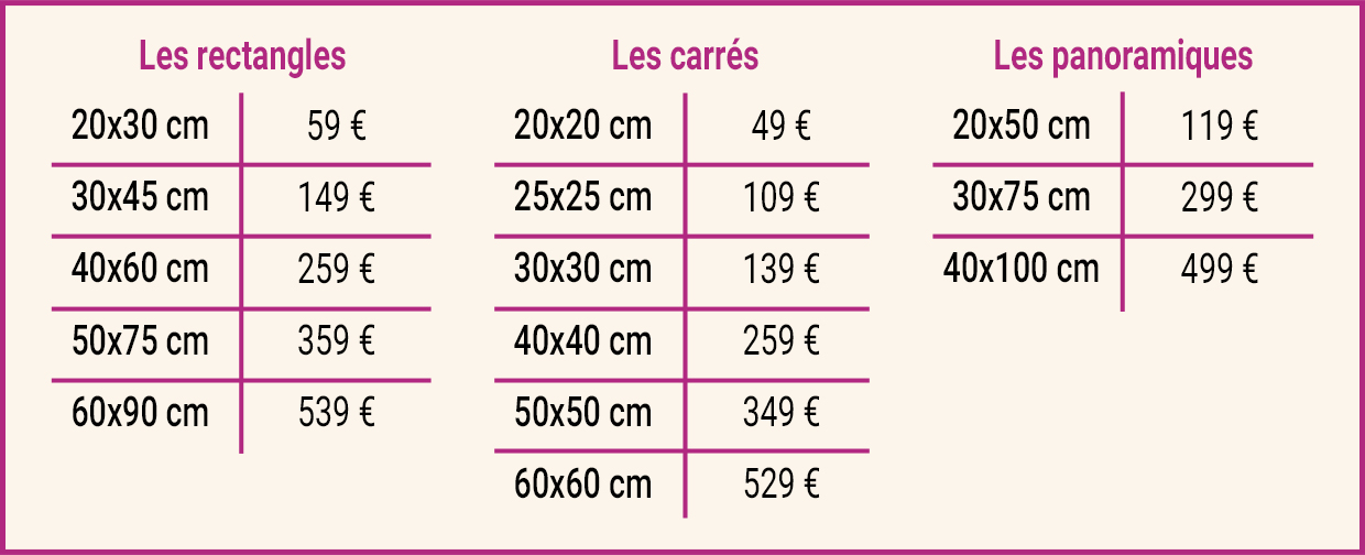 Important : Chaque Tableau Clic inclut obligatoirement l’achat du tableau imprimé.Il n'y a pas de livraison numérique HD.